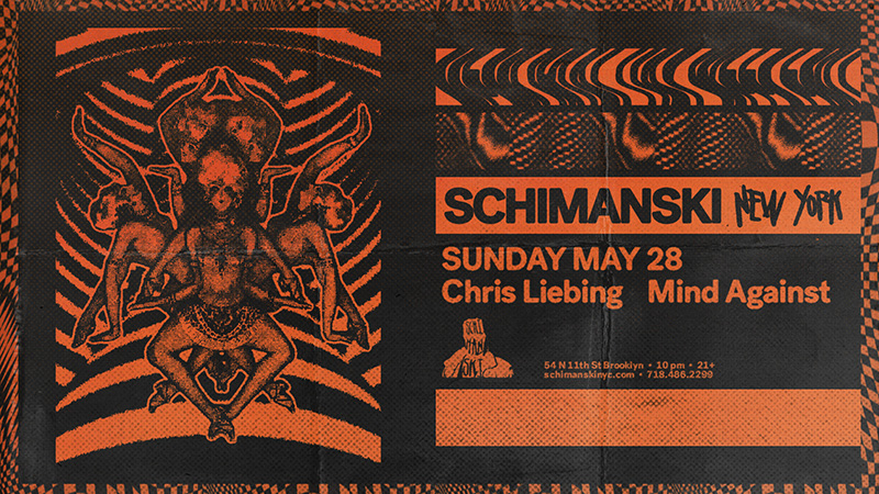Chris Liebing, Mind Against | Memorial Day Sunday Sunday, May 28, 2017 10:00 PM 11:00 PM 22:00 23:00 Schimanski 54 North 11th Street Brooklyn, NY, 11249 United States (map) Google Calendar ICS Chris Liebing, Mind AgainstSunday May 28Memorial Day Weekend (No Work Monday)Doors 10pm / 21+ to enter / 718.486.2299 tickets